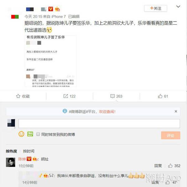 网友看到陈坤“霸气”回应,纷纷为其点赞,称:“我坤从来都是亲自辟谣,没有粉丝什么事儿。”此爆料随即被删除。