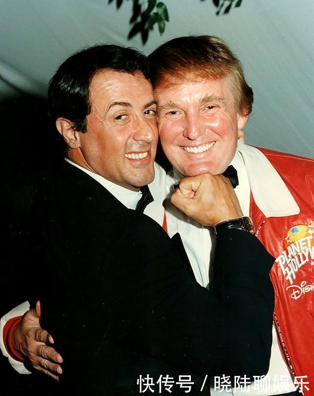 1997年,在佛罗里达棕榈滩举行的一场慈善活动上,史泰龙和当时还是地产大亨的特朗普搞怪合影。这位巨星万万没想到,那个曾被自己用拳顶住下巴的男人日后竟成了美国总统。