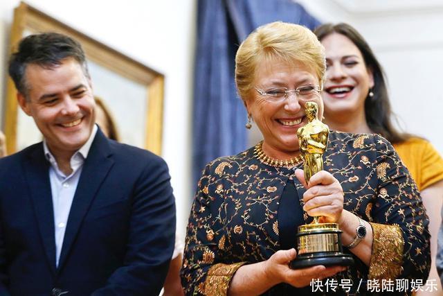 智利电影《普通女人》摘夺第90届奥斯卡最佳外语片奖后,剧组成员获时任总统米歇尔·巴切莱特接见,亲手捧起“小金人”的总统难掩骄傲喜悦之情,瞬间笑开花。