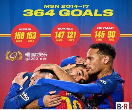 从个人数据上来看,MSN也的确是史诗级别的。MSN一共合作110场,巴萨获胜84场,胜率为76%。MSN一共联袂出场8896分钟,一共打进了228球,平均每39分钟进一球。MSN互相助攻数为124次,平均72分钟一次。