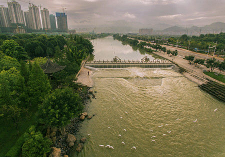 玉溪曾经是镶嵌在滇中的一块碧玉,玉溪因水得名,水,是这座城市的灵魂。抚仙湖倒流之水改变了玉溪旧有的面貌,在玉溪市区北面,一个宽276米、高13米的极为壮观的人工瀑布出现在世人面前,这就是出流改道工程的出水口,清清湖水从此进入玉溪坝子。湖水流过的地方,是草地、鲜花、绿树、琴声、欢歌、笑语,一个占地650亩的两湖大瀑布公园就像一个巨大的花园,为市民提供了一个休闲、运动、娱乐的绝佳场所。湖水继续流淌,在聂耳山下的草地、沙滩、树木间汇成了美丽的玉湖,湖畔就是聂耳音乐广场。抚仙湖水流出玉湖,玉溪大河就有了一个活水源头,大河两岸种下了成片的银杏树、柿子树,河上建起了兰溪桥,喜鹊、八哥、白鹭等消失多年的鸟类又重新回到玉溪城的上空……