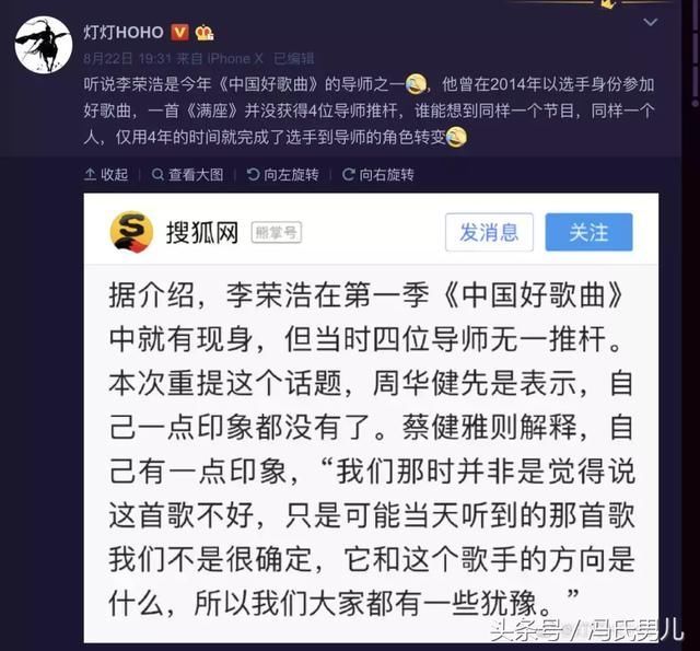 而今天早上小编刷微博的时候,又看到了《好歌曲》的消息,这次直接宣布了其中一位导师—李荣浩。