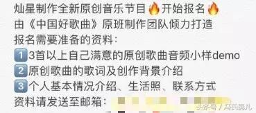 最近,小编在很多音乐人的群里,都看到了一个消息,说是灿星制作全新原创音乐节目,开始征集音乐人作品报名。