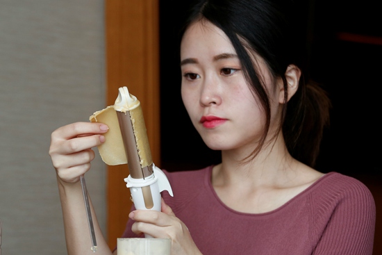 就在工位上,姑娘用电熨斗烤熟了肥牛卷,用生菜叶包好,蘸点作料,有滋有味大吃起来。一串令人咋舌的动作堪称行云流水,姑娘始终一言不发,满屋同事也无人干涉。