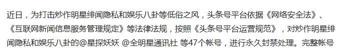 此次共封停了47个相关账号。不仅头条紧跟政策,其他平台也都积极响应,就不一一列举了。
