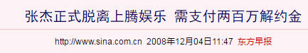 当年的张杰拮据多了,在他要赔偿给上腾娱乐的违约金50万+解约金125万中,有140万是由歌迷筹款而来,差不多算是帮他“赎身”了。
