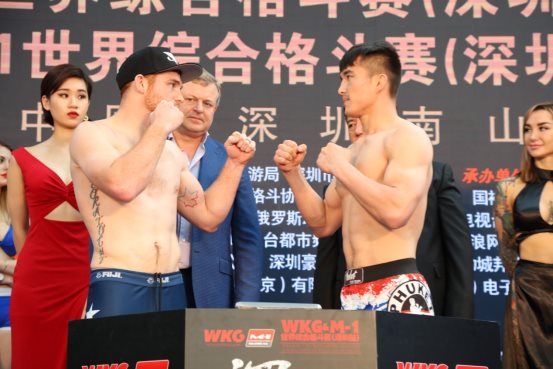 格斗赛(深圳)参赛选手称重仪式在深圳南山万象天地L6层“云端沙龙”举行,世界韩久力、WKG创始人佟力和南山文体局等领导和嘉宾出席了活动,来自10个国家20名选手悉数亮相,出场方式各具特色,火药味十足,使得深圳格斗迷和观众拥有一次近距离感受