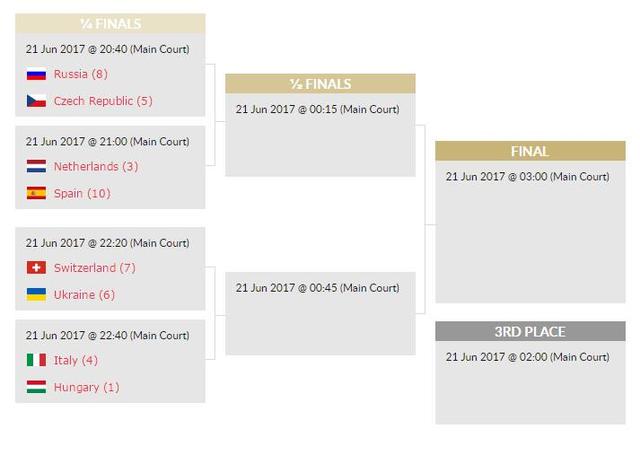 经过前几日小组赛与淘汰赛的角逐,男篮方面最终晋级8强的球队分别为塞尔维亚、美国、乌克兰、法国、斯洛文尼亚、卡塔尔、荷兰、俄罗斯,女篮方面8强则是俄罗斯、捷克、荷兰、西班牙、瑞士、乌克兰、意大利、匈牙利,他们将在最后一个比赛日为冠军而战。以下为FIBA3X3世界杯收官日具体对阵信息: