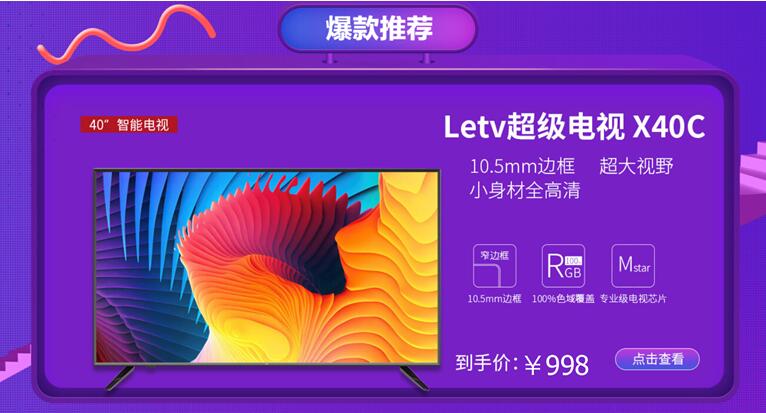 除两款新品之外,爆款产品40吋Letv超级电视X40C到手价仅998元,全国限量600台。
