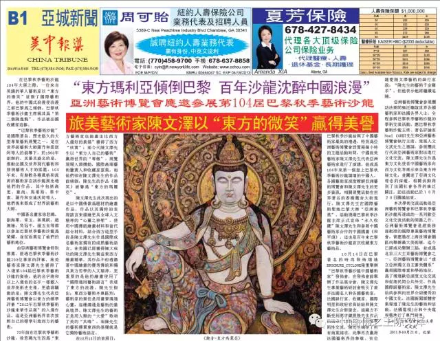 2011年,陈文泽教授应法国“巴黎秋季艺术沙龙展”主席Noel Coret的邀请代表亚洲首席艺术家参加第104届“巴黎秋季艺术沙龙展”,史无前例地将东方佛像绘画艺术推向世界艺术最高的殿堂,并成为104年来第一个登上巴黎秋季艺术沙龙讲坛的中国人。