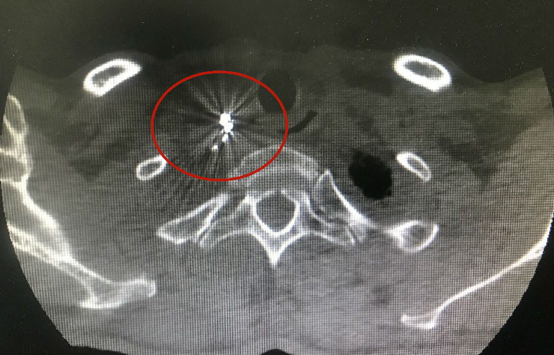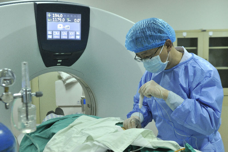 治疗方案确定后,曹旸在CT引导下准确将多颗碘125粒子植入到了肿瘤部位,对肿瘤细胞及组织形成局部持续辐射,可提高靶区的照射量,有效抑制肿瘤细胞的分裂和再增殖,对周围组织脏器及正常细胞损伤轻微,精确性高,并发症较少。