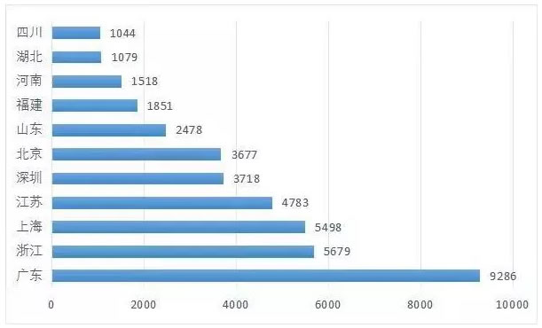 排在广东之后的是上海,注册人才数量为27410人;随后是江苏、北京,注册人才数量分别为18432人、16446人;注册人才数量过万的还有深圳、浙江,分别为14031人、13602人。