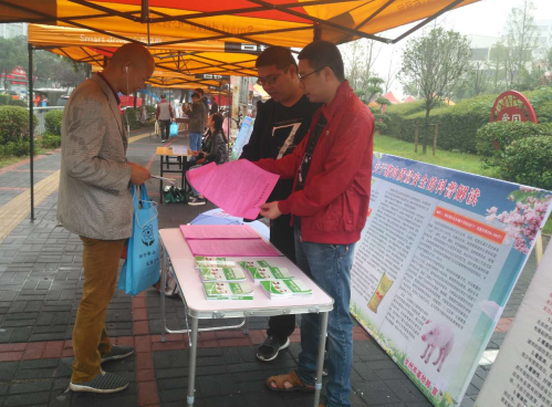 活动现场,市畜牧局4名志愿服务人员,热情、礼貌的解答问题、发放资料,受到群众好评。