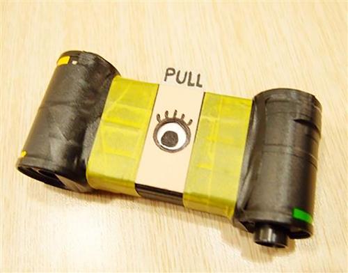 11 利用电火布胶带将它们粘起来,但请注意,这地方不要粘得太紧,毕竟你还要移动你的快门。粘太紧,快门会拔不动了。