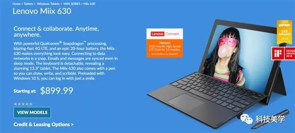 联想Miix 630是第一批骁龙平台的ACPC(全互联电脑),主打千兆4G LTE网络支持和长续航。