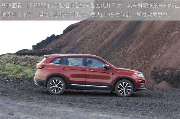 为了达到更好的视觉效果和行驶品质,改款CS75换上了更大尺寸的轮胎和轮毂,加上前脸和尾部的巨大变化,新CS75的外观进化相当成功。