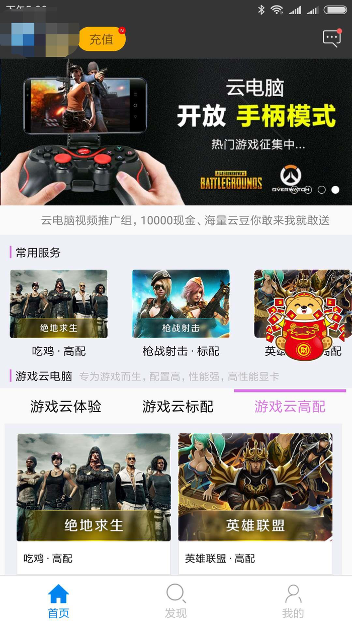 本想体会云电脑办公的高大上,没想到要体验云电脑玩端游,而且是最火的端游,吃鸡、LOL、CF类的。起初小编很是好奇,自己的小米笔记本都玩不起来。不管他,先体验一下。
