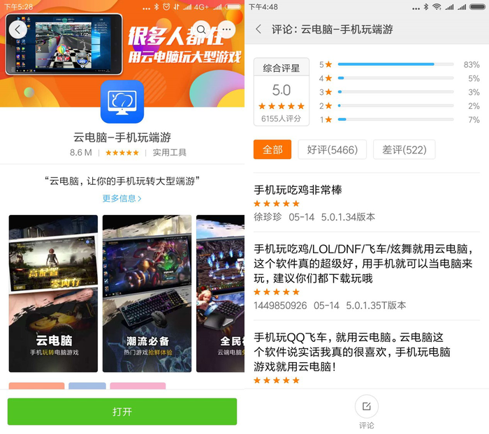云电脑手机玩端游,COOL,什么?很多人都在玩?五星好评?蒙我吧,怎么可能?华为云电脑产品也就说能玩小游戏,你这能玩大型端游?看看评论,尽然有6000多条?
