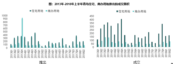 上半年青岛共成交住宅、商业类经营性土地476.7万平方米,同比上升207.5%;其中住宅用地成交333.2万平方米,同比上升152.2%;商办用地成交143.5万平方米,同比下降526.6% 。