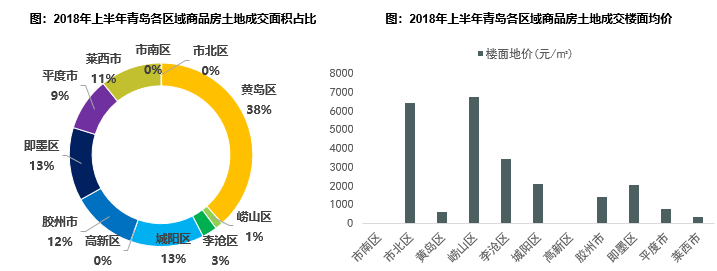 楼面均价方面,2018年上半年青岛住宅用地成交楼面价为2928元/平方米,同比大幅上涨64.9%;商办用地成交楼面价为2001元/平方米,同比上涨27.6%。
