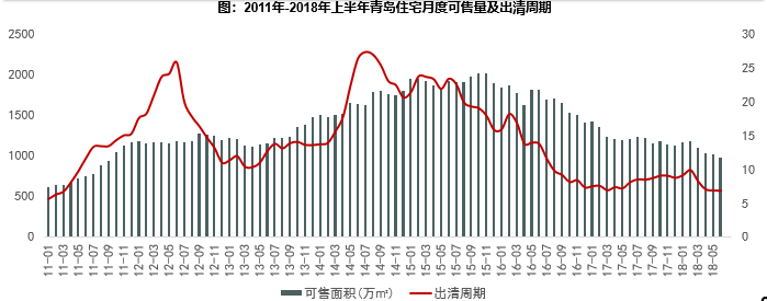 从销供比来看,成交量维持高点的同时,供应量处于较低水平。2018上半年销供比均在1以上,其中3月份出现销供比历史高点,达到4.36,1月份出现销供比上半年最低点为1.25,说明2018年以来青岛市场一直处于供不应求的状态。