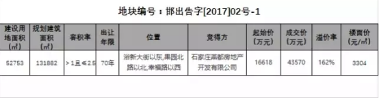 回顾2017年邯郸土拍市场,燕都地产以4.357亿的高价竞得[2017]02号-1地块,溢价率高达162%。保利地产更是以7.2亿元竞得棉三地块,以每亩752.85万元的成交价,刷新邯郸地王纪录。疯狂的价格背后,也标志着邯郸主城区的价值无可替代。