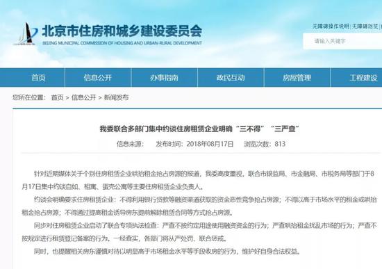 我们注意到,这个相关部门名叫北京市住房和城乡建设委员会,也就是北京住建委,看来这是租房行业的监管部门了,于是我们来到了该委员会的官方网站