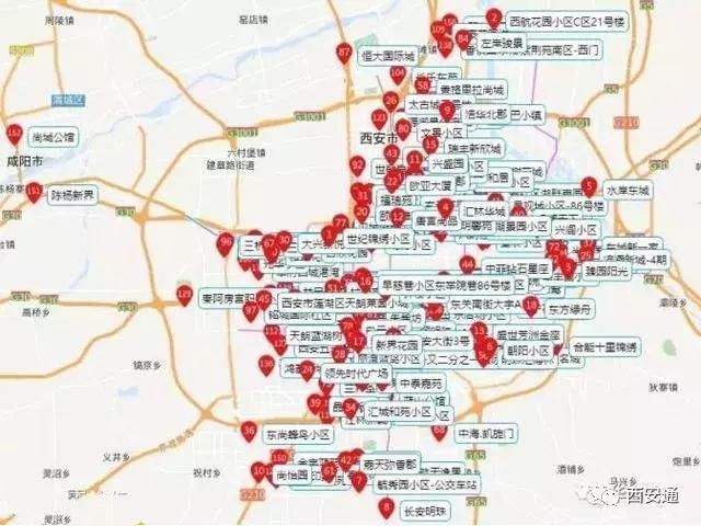 陆亚花园、阿房二路光华小区、海景印象城、香槟国际城紫荆苑小区、北辰大道泘沱村、佳鑫花园小区、豪顿国际、汇林华城、浩华北郡、兴盛园、唐宫尚品、瑞丰新欣城、颐馨雅苑、二府庄小区、太古城三号地、福瑞苑小区、景观城小区、MAX未来、玄武花园、翠湖明居、奇星御园、欧亚达大厦、颐和郡小区、香格里拉尚城、百花家园小区、凤鸣华府小区、祥和居、泰和居、龙翔御苑小区、汉城湖畔、文景小区、湖畔嘉园、左岸骏景、恒大国际城、世融嘉城、秦龙泉小区、百合花园小区、雅荷四季城、西安市政馨苑小区、长乐东苑、光华小区、华豪花园洋房小区、绿地香树花城小区、光明鑫苑小区、欧罗巴小镇、富丽园小区、佳家花园小区、滨水花城、金源御景华府、皇家园林小区、阿房宫职工小区、九如御小区、安诚御花苑