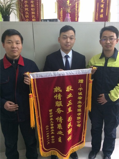 进驻后,项目做的另一件大事儿就是联合睿服务甲方,引入备用电源,即实现突发停电后,电梯正常使用,供水正常。这就让小区的生活多了一份保障。曾经有一次,供电局临时停电,不巧赶上一位业主办喜事,业主着急向物业求助,最终通过备用电源,成功为业主救急。困难之中显身手,业主送上锦旗致谢。