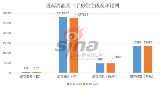 据新浪乐居汕头站联广数据监测,上周(2018.8.20-2018.8.26)汕头二手市场住宅交易量与上上周相比减少12套,住宅均价环比上涨64元/平。