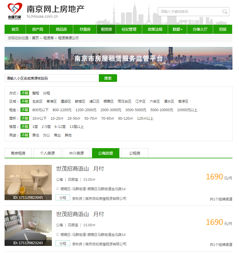 近日,我市首批公寓房源南京自如,在南京网上房地产网站、“我的南京”手机APP和“南京房产微政务”微信公众号的房屋租赁频道正式挂牌。
