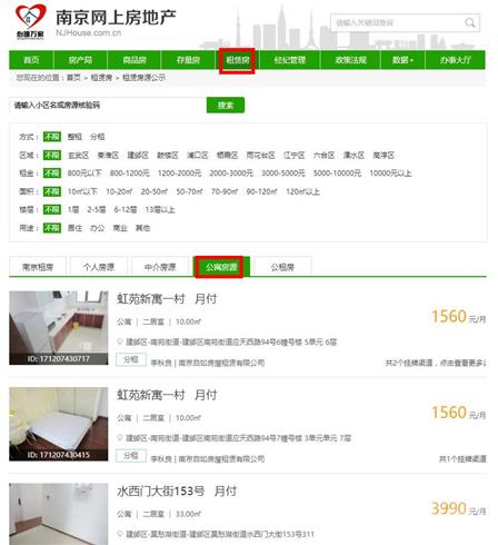 记者登陆南京网上房地产官网,打开租赁房-公寓房源,就可以看到由南京自如房屋租赁有限公司挂出的房源,每页有20套房源,共7页123套房。房屋分布在建邺、玄武、秦淮等区,租金支付有月付、季付等选择。