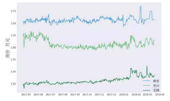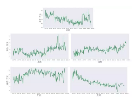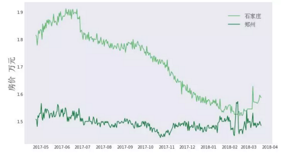 狗熊会从某二手房网站抓取了全国20个城市的在售二手房数据,时间跨度为2017年4月份到2018年3月份。具体地,对于某一城市,每天抓取7000到8000套二手房信息,将这些二手房房价取中位数,并作为该城市当天二手房价格(每平米单价)的平均水平。此次我们对这些城市的房价走势进行了简单分析,并结合政策给出一定程度的解读。