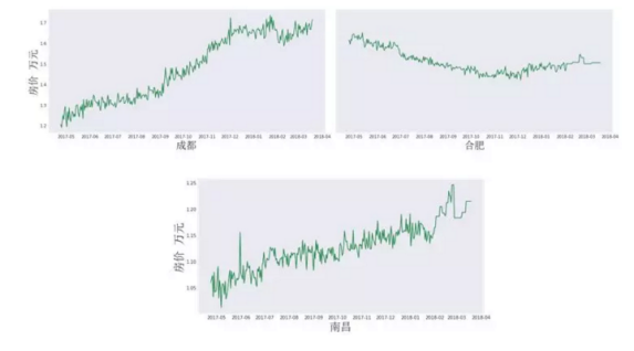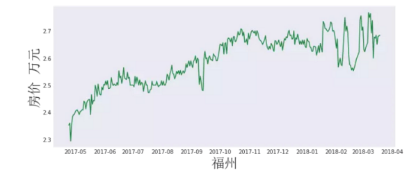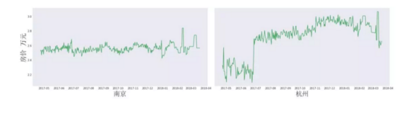 广州:广州于2017年3月31日颁布并实施新的限购细则,但纵观房价似乎并未收到限购政策的影响。2017年5月至2018年1月,整体呈现先上升后保持稳定的趋势。