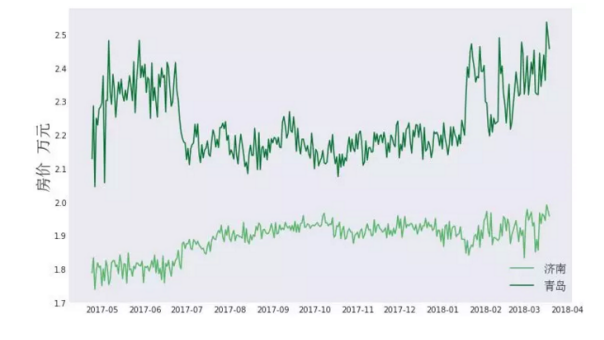 济南、青岛:济南和青岛同属山东省,对比而言,青岛二手房价平均水平明显高于济南。济南在2017年5月和6月限购政策稍有放松,可能是造成价格略微上涨的原因。青岛在2017年下半年的表现比较平稳。