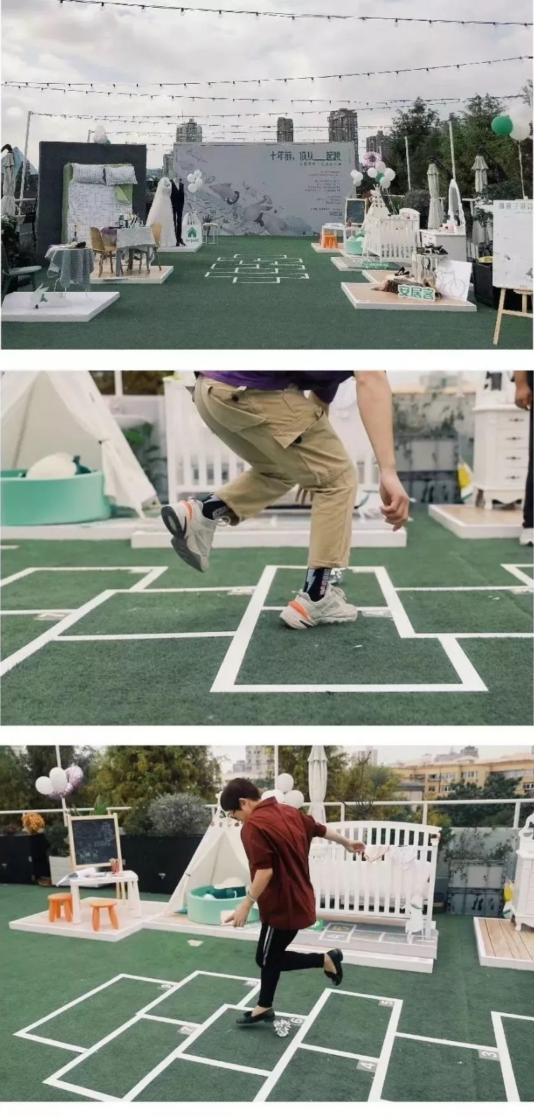 除了体验跳房子,活动现场周围还布有家居装置的摆设、很多艺术的场景、悬浮的装置、VR看房的体验区。