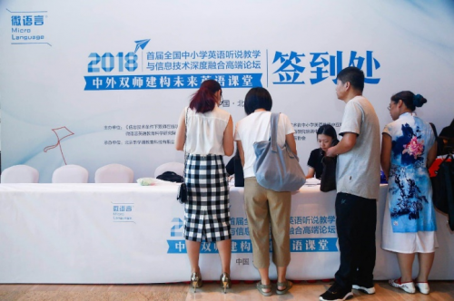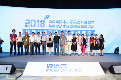 2018年8月15日,由教育部课题的重点子课题《信息技术条件下双师在线听说教学模式建构》课题组、微语言英语教育科学研究院共同主办的“2018首届全国中小学英语听说教学与信息技术深度融合高端论坛”在北京雁栖湖畔隆重召开,此次高端论坛受到了教育各界人士的广泛关注和大力支持。作为本次论坛会议的主办方,课题组邀请到了来自全国各地20余位顶尖教育专家、200多位省市教研员和学校代表、200多位来自全国各地的微语言合作伙伴,与会同仁们共同探讨了信息技术条件下中外双师如何建构未来英语课堂。