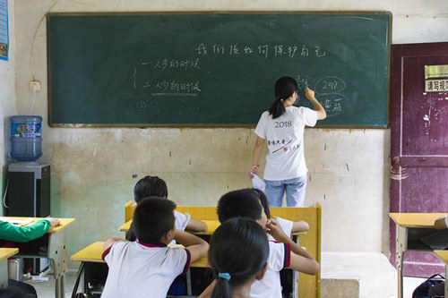 今年7月,南昌大学材料学院支教调研实践队走入东山小学。本着“想要带给学生更好、更全面的知识”的目的,在今年的课堂中,实践队安排了安全教育课,专门教授如何防止性侵害及如何应对性侵害等内容。