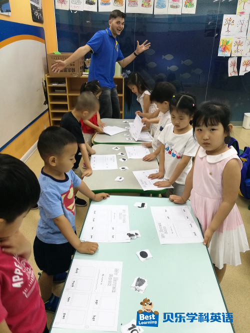 学到押韵这一部分时,孩子们通过贝乐外教老师的指示将对应的物品图片放入书中对应的方框里,在小朋友们的努力下,一本属于他们自己的押韵书就这样做好啦!孩子们动手的同时也巩固了对单词的记忆。
