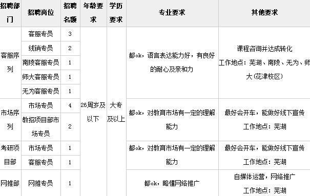 一、招聘范围安徽省内应届毕业生以及社会在职(毕业生和毕业N年都在范围内)。