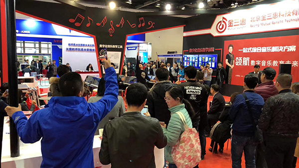 金三惠等企业带来的音乐课堂,老师教学的电子主屏可点、可弹,支持不同的乐器声音,学生充分使用触摸屏和键盘参与到教学之中,还可以通过游戏学音乐!