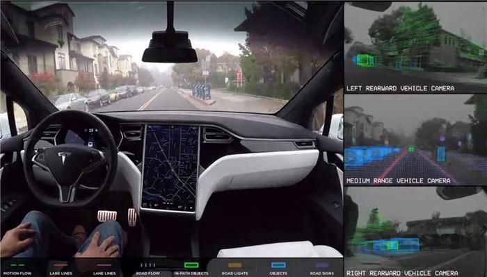 如今,网上流出了一张照片,其中的工程车启用了开发模式“dev mode”。该照片显示了Autopilot系统在中央显示屏所呈现的视觉效果,还显示了“完全自动驾驶功能”等其他选项设置。特斯拉为Model S及Model X两款车型配置了8个摄像头,含3个前置摄像头:探查距离为250米的窄角前视摄像头、探查距离为150米的中程摄像头(作为主摄像头使用)及探测距离为60米的宽角短程前视摄像头各1个。此外,在前翼子板及B柱的两侧各有2个摄像头,另有1个后置摄像头。详见正文。