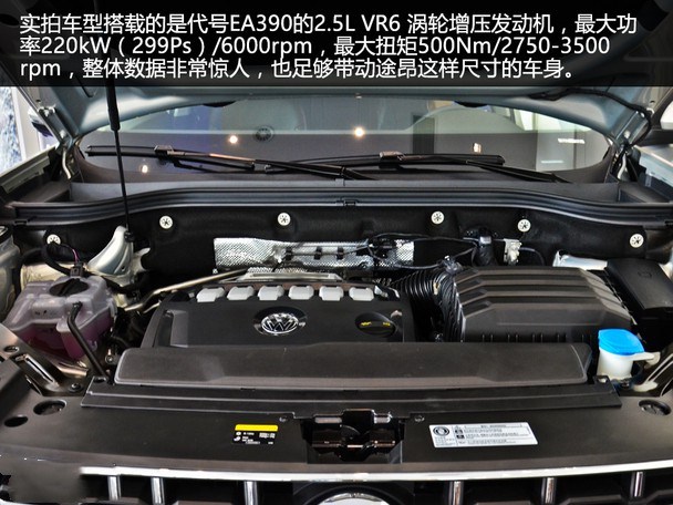 动力方面,途昂配备了2.0T(高/低功率)和2.5T V6涡轮增压发动机,其中2.5T发动机的额定功率可达220kW,峰值扭矩500N·m,并提供四驱系统。传动系统方面,新车匹配了DSG七速湿式双离合变速器