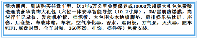 1.本店在售所有车型均为正规全新商品车。可享受全国联保三包政策。且可以在全国任何一家厂家授权的正规店免费首保以及之后的维修保养。