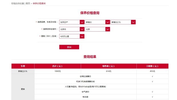 全新楼兰2.5L车型在零配件材料费用方面和奇骏的2.5L车型并没有太大差异,这无疑是件好事,除了部分配件的价格和工时费有小幅度差异,这款中型SUV确实还保持着紧凑型SUV的价格水平。需要注意的一点是:全新楼兰的工时费用采用“套餐制”,看起来比之前的奇骏2.5L车型贵了不少。也就是说,当您行驶至建议保养里程时,只需要将所换项目的材料费全加起来,然后加上所对应里程数的套餐工时费即可。