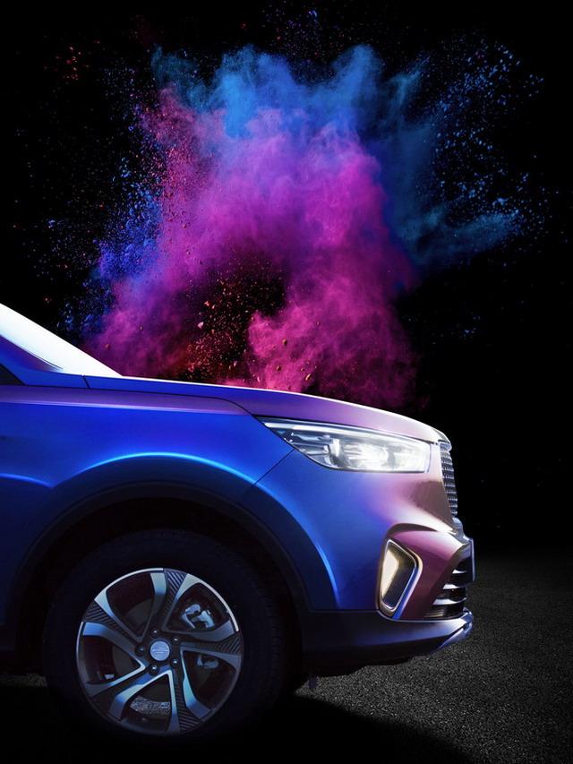 外观方面,新车的前进气格栅采用了当下流行的满天星设计元素,车身线条较为硬朗。图中的炫彩版个性车漆支持定制。车身的长宽高分别为4830×1868×1750/1775mm,轴距为2800mm。