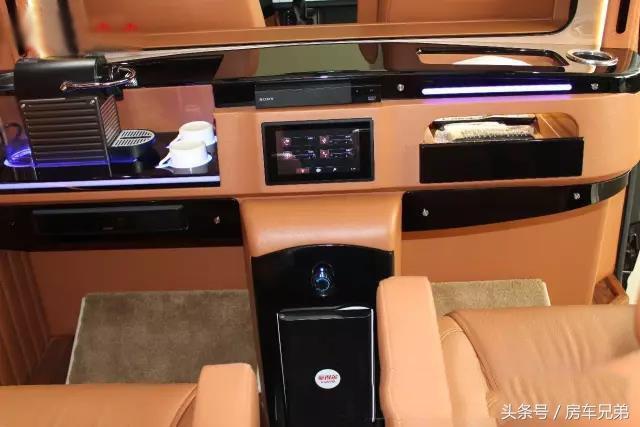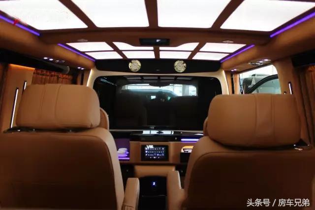 全车座椅真皮制作,带通风加热按摩系统,前排座椅可前后平行滑动,还可电动380度旋转,与后排座椅形成面对面会谈模式,如有需要还可在座椅前方安装总裁会议桌。