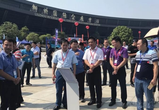 展会现场,柳州市城管局市容科领导与广西所有地市城管系统人员一行,一同参观了乘龙新能源环卫车型,并给予高度评价。