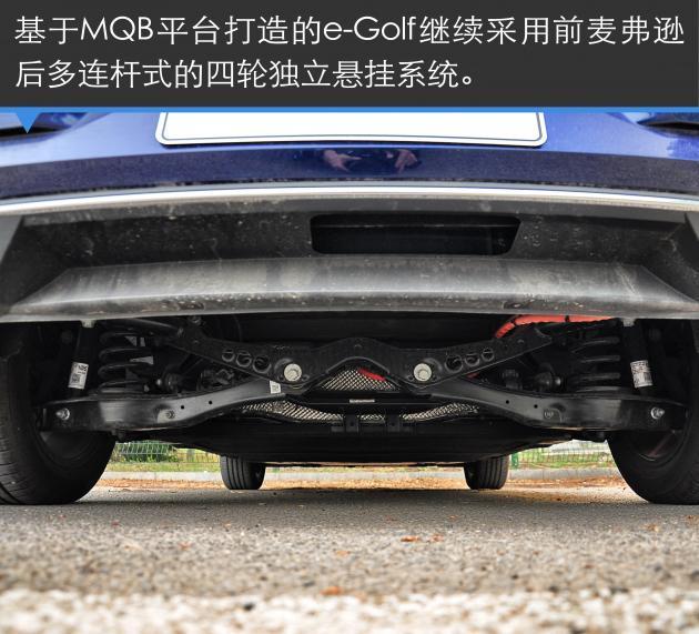 底盘部分,基于大众MQB平台打造的e-Golf继续采用了与国产2018款高尔夫相同的前麦弗逊多连杆式的四轮独立悬挂系统,并且容量为35.8kwh的电池组也被均匀分布在前后排座椅及中央通道下方,因此e-Golf的电池组几乎没有侵占到车辆的内部空间。