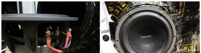中低音安装在原车喇叭位置,喇叭接线端口焊接处理,焊好再套热收缩管,安装中低音喇叭专车专用垫,防水罩,做好防水处理,增加使用寿命。